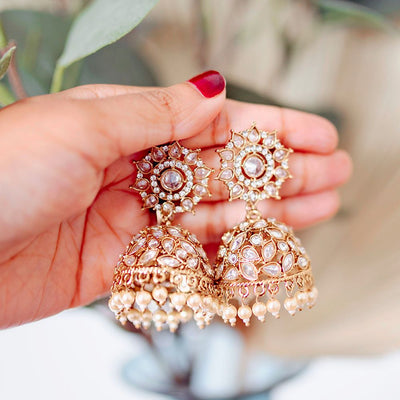 Introducing Blossom Box's Maharani Earrings, adorned with luxurious polki stones and pearls, and finished with a stunning gold plating. These elegant earrings are lightweight and versatile, making them the perfect addition to any outfit. A must-have for every jewelry collection! As seen on celebrities like Kelly Rowland, these earrings are sure to make a statement.